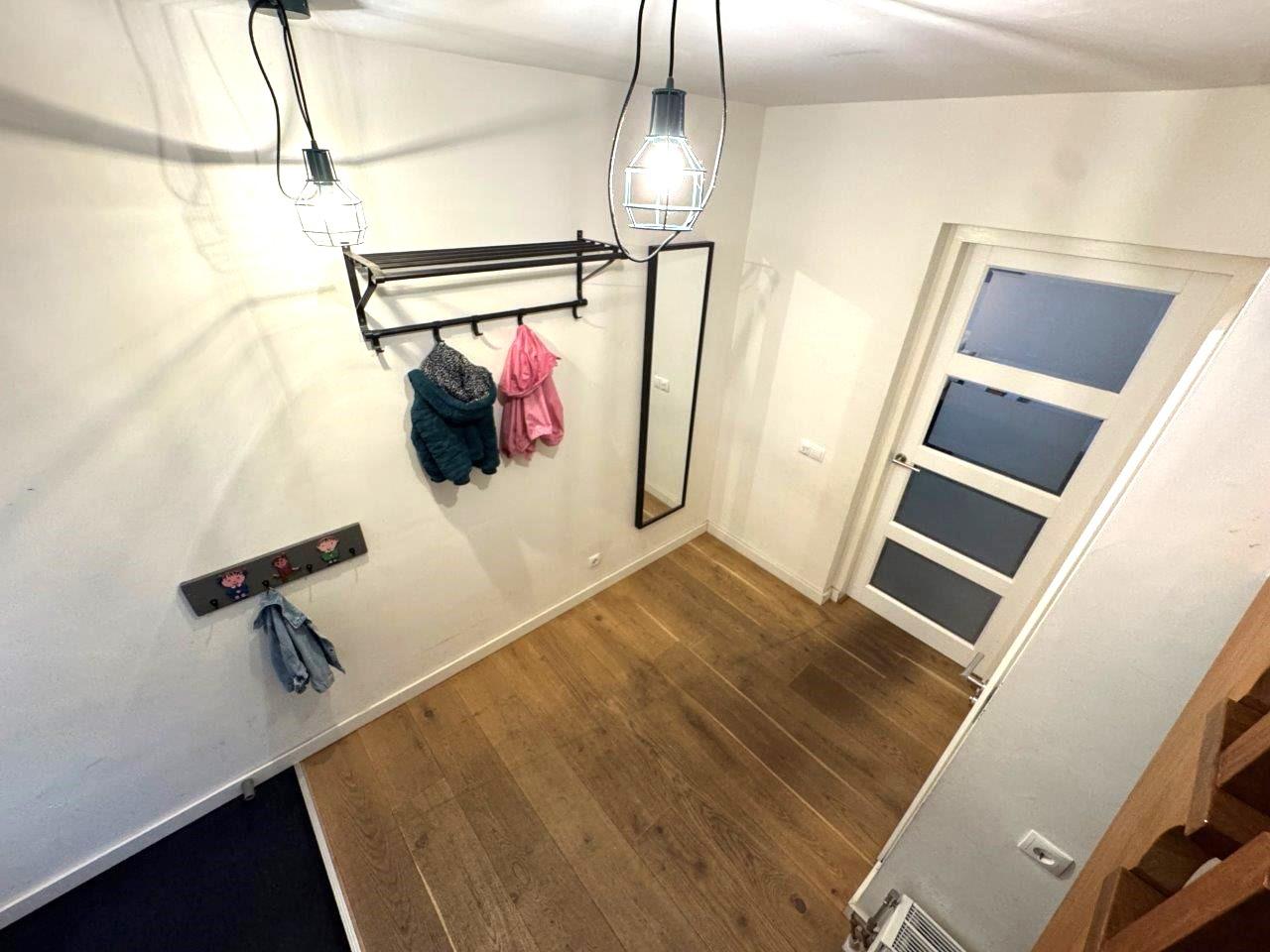 Royale hal met meterkast, garderobe, toiletruimte, toegang tot living, berging, souterrain en werkkamer. De woonkamer met eikenhouten vloer en houtkachel vormt het hart van het huis. De moderne keuken is voorzien van alle inbouwapparatuur, waaronder een inductiekookplaat, combi-oven, vaatwasser en koelkast. Vanuit de keuken is er een loopdeur naar de tuin.