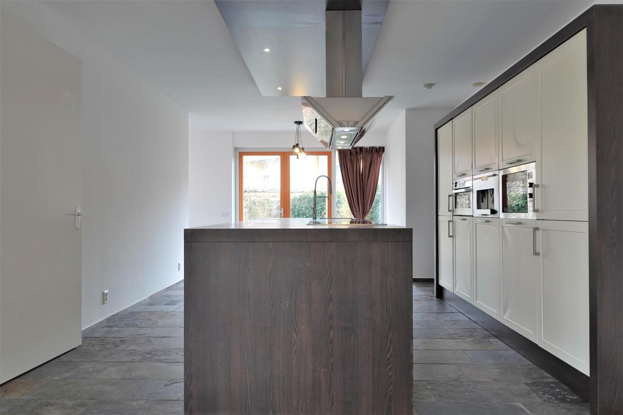 Via de voordeur is de hal te bereiken die toegang biedt tot de wc, de meterkast, een bergkast, de trapopgang naar de 1e verdieping en de woonkamer. De woonkamer biedt aan de voorzijde van de woning een mooi uitzicht over de voortuin, en de straat door middel van grote raampartijen. In het midden van de ruimte is de luxe keuken gesitueerd die is voorzien van alle gemakken, zoals: een koelkast, een vriezer, een magnetron, een stoomoven, een vaatwasser, een inductie kookplaat, een afzuigkap en een Quooker. Aan de achterzijde van de woning is er ruime voor een eethoek en is de achtertuin te bereiken door openslaande deuren. De op het noord-oosten gerichte achtertuin biedt veel mogelijkheden tot het buiten genieten vanwege de diverse terrassen. In de achtertuin en aan de zijkant zijn twee bergingen aanwezig. Aan de voorzijde is een carport met ruimte voor 1 auto.