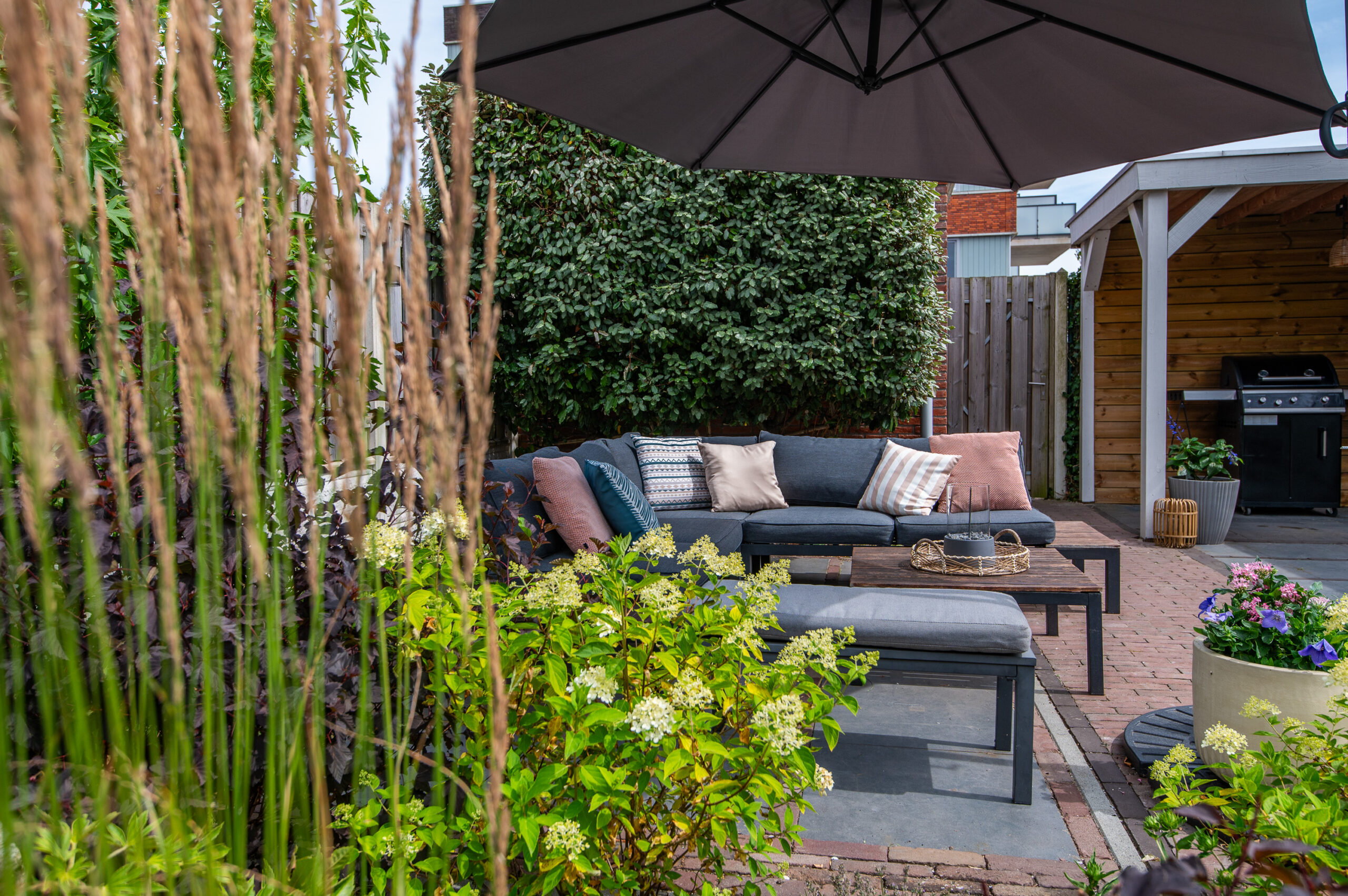 Door het hoekperceel is de tuin extra ruim. Er zijn diverse gezellige zitgedeelten, naar wens in de schaduw of in de zon. Er is een berging, maar er is ook een extra overkapping geplaatst voor een vast loungegedeelte in de schaduw. Deze overkapping is tevens voorzien van een buitenkeuken. Er is zowel aan de achterzijde als aan de zijkant een entree. Aan de achterzijde grenst de tuin heel praktisch aan een parkeerplaats. Privéparkeerplaats aan de voorzijde.