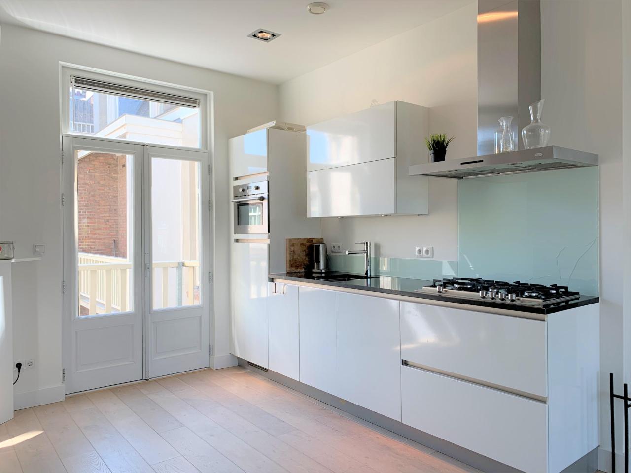 Indeling: Gezamenlijk trappenhuis met entree van het appartement op de 2e verdieping. Op deze verdieping vindt u master bedroom voorzien van een tweepersoonsbed en kledingkast en de mooie, ruime badkamer voorzien van een ligbad, royale inloopdouche, dubbele wastafel, toilet, designradiator en vloerverwarming. Interne trap naar de 3e verdieping. Lichte woonkamer met grote raampartij aan de voorzijde en open keuken aan de achterzijde. De luxe en moderne keuken is voorzien van een koelkast met vriesvak, combimagnetron, vaatwasser en gaskookplaat met afzuigkap. Dubbele deuren naar het balkon. Op deze verdieping vindt u ook een 2e slaapkamer voorzien van veel kastruimte. Het gehele appartement is zeer luxe afgewerkt, met een mooie houten vloer en zelfs airconditioning in de woonkamer en master bedroom!