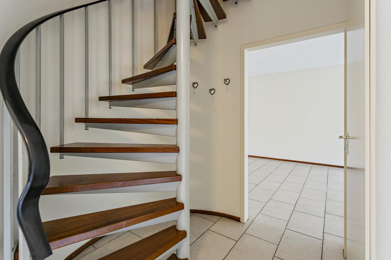 Bij binnenkomst in de woning komen we in een ruime hal waar zich de meterkast, het toilet en een wenteltrap bevindt naar de eerste verdieping.