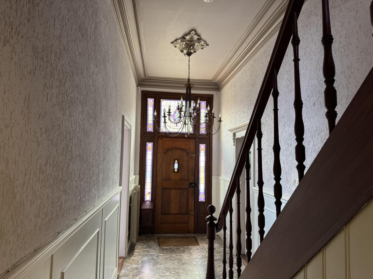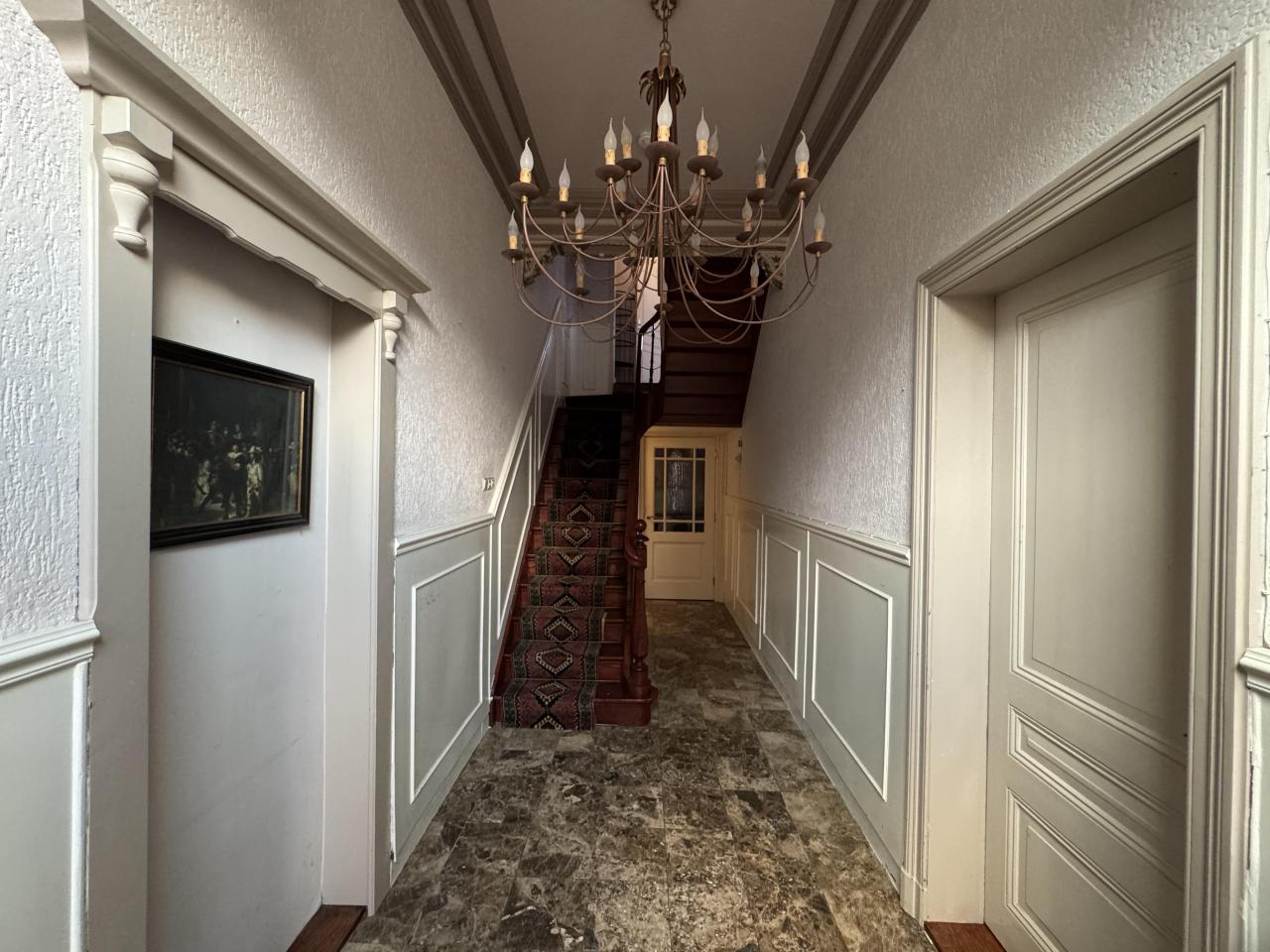 Bij binnenkomst in de authentieke ruime hal vinden we de trapopgang naar de eerste verdieping. Rechts bevindt zich de “voorkamer” welke af te sluiten is met schuifdeuren van de “achterkamer”.