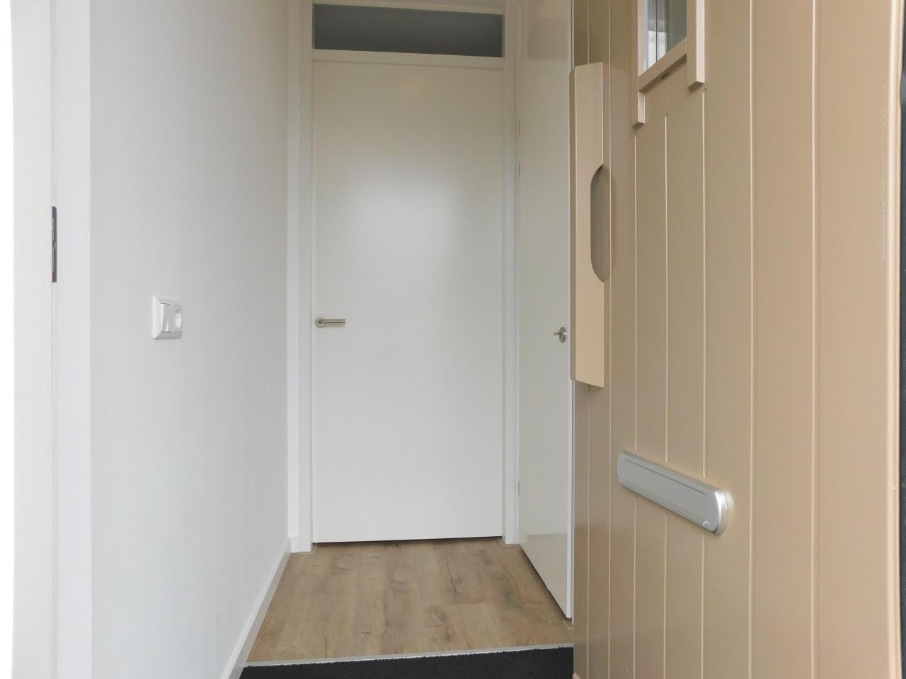 Begane grond: Entree in de hal van de woning, vanuit waar er toegang is tot de slaapkamers, woonkamer, en het separate toilet.