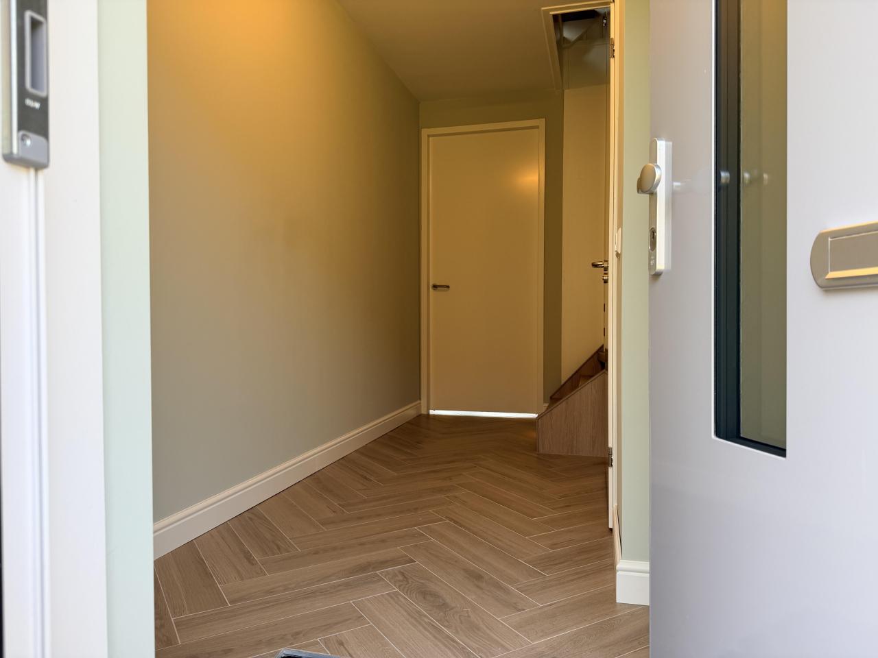 Begane grond: Entree in de hal van de woning, alwaar het separate toilet en de trap naar de eerste verdieping zich bevinden. Toegang tot de woonkamer, welke aan zowel voor- als achterzijde beschikt over een grote raampartij en de ruimte prachtig licht maakt. Aan de voorzijde van de woning bevindt zich de halfopen keuken, voorzien van diverse inbouwapparatuur, te weten; koel-/vriescombinatie, oven, inductiekookplaat met geïntegreerde afzuigkap en vaatwasser. Vanuit de woonkamer is de zonnig gelegen achtertuin met (fietsen)berging te bereiken. De woning is compleet voorzien van vloerverwarming.