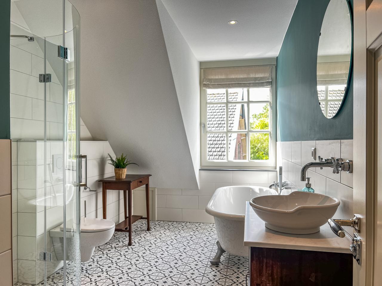 Via de trapopgang is de overloop te bereiken die toegang biedt tot vier slaapkamers, de twee badkamers en een kast waar de wasmachine en wasdroger (die in bruikleen worden aangeboden). In alle slaapkamers zijn authentieke details aanwezig wat een bijzondere sfeer geeft. De eerste badkamer is voorzien van een douche, een wc en een wastafel. De tweede badkamer is voorzien van een ligbad, een douche, een wc en een wastafel.