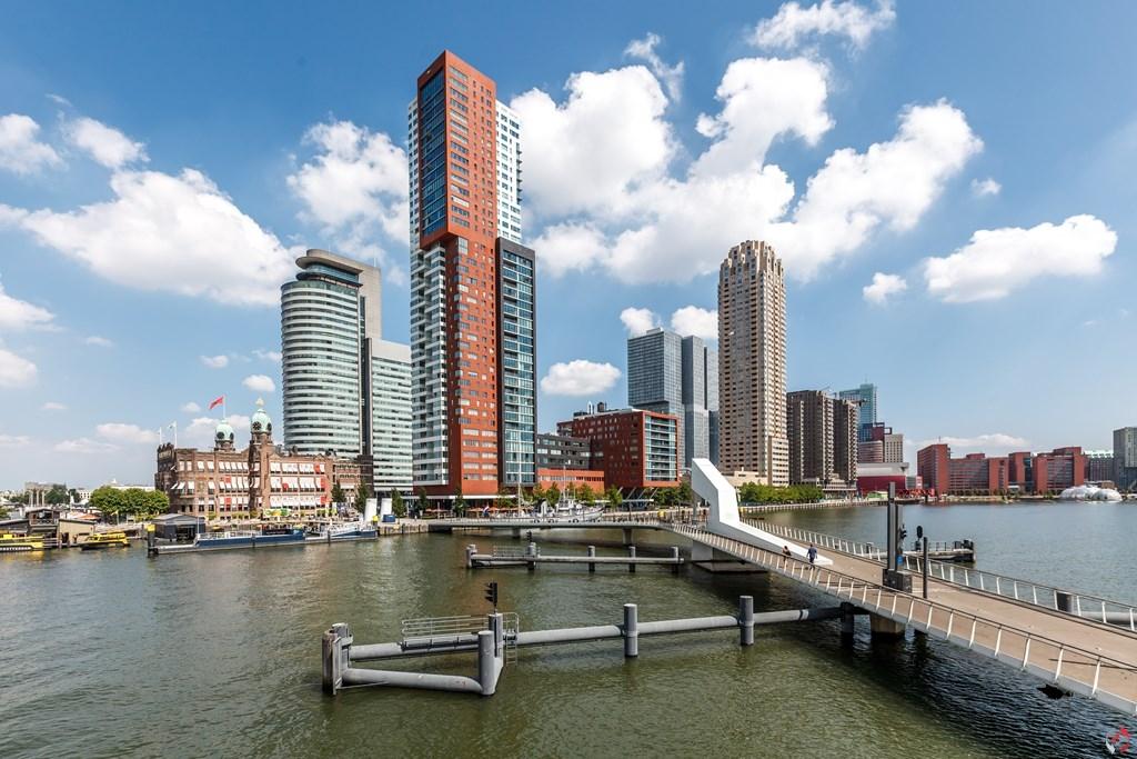Entree. Hal met toegang tot alle vertrekken. Apart toilet met fonteintje. Ruime woonkamer incl. airco, met fenomenaal uitzicht o.a. over de havens en de Erasmusburg. Keuken met inbouwapparatuur, bijkeuken, loggia. Vanuit de hal is er toegang tot de logeerkamer, welke voorzien is van bedbank (2-persoonsbed) en kledingkast. De masterbedroom is voorzien van een groot 2-persoonsbed en kledingkast. De badkamer is voorzien van een ruim ligbad, douche, 2de toilet en wastafelmeubel met spiegel. Daarnaast is er nog een grote berging waar zich ook de wasmachine bevindt.