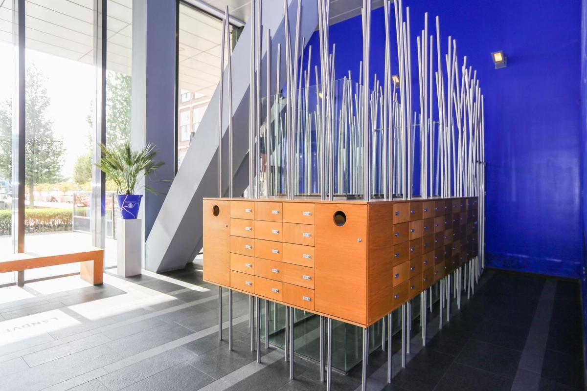 Centrale afgesloten hal met videofoon, brievenbussen en liftinstallatie.
