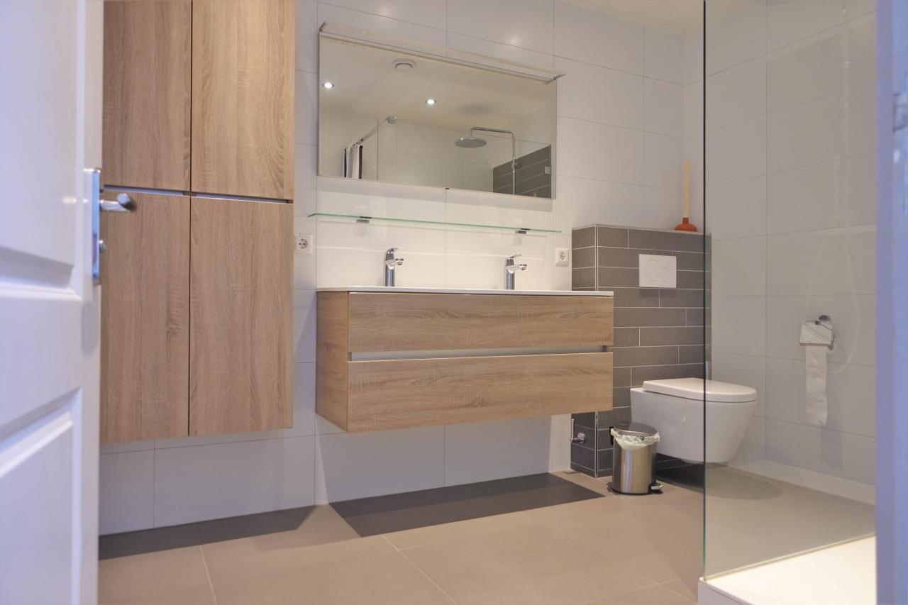 Via de trapopgang is de overloop te bereiken die toegang biedt tot de twee ruime slaapkamers, waarvan een aan de voor en een aan de achterzijde van de woning bevindt. In het midden is de gerenoveerde luxe badkamer gesitueerd. Deze is voorzien van een douche, een wc, een dubbele wastafel met meubel en een design radiator.