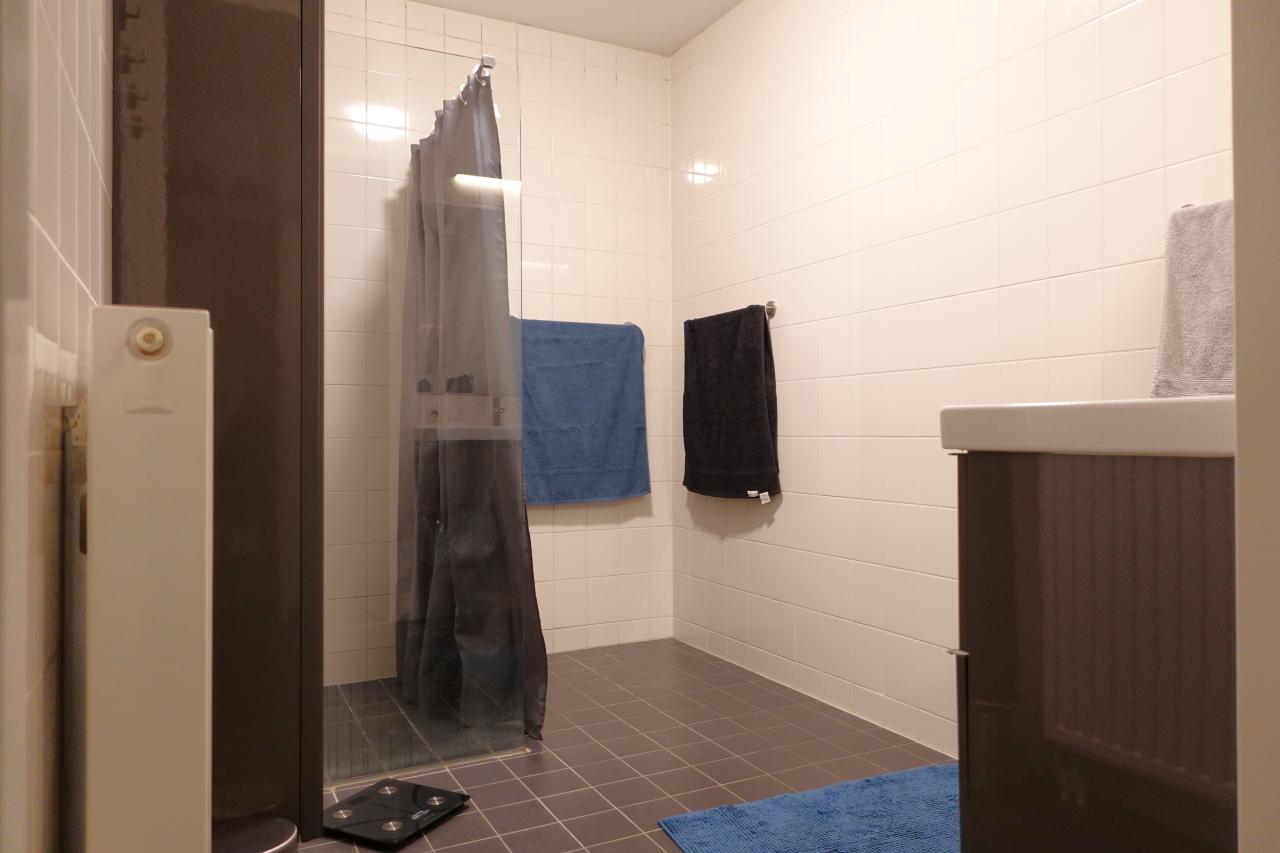 Via de centrale hal is via de voordeur het appartement te bereiken. De hal biedt toegang tot alle vertrekken in het appartement. Allereerst is de meterkast te bereiken gevolgd door een bergkast met wasmachine, de badkamer , de slaapkamer, de wc en de lichte woonkamer met open keuken. De woonkamer biedt toegang tot een ruim op het noordwesten gericht balkon. De moderne open keuken is voorzien van alle gemakken zoals: een koelkast, een vriezer, een magnetron, een oven, een elektrische kookplaat, een vaatwasser en een afzuigkap. De badkamer heeft een inloopdouche en een wastafel.