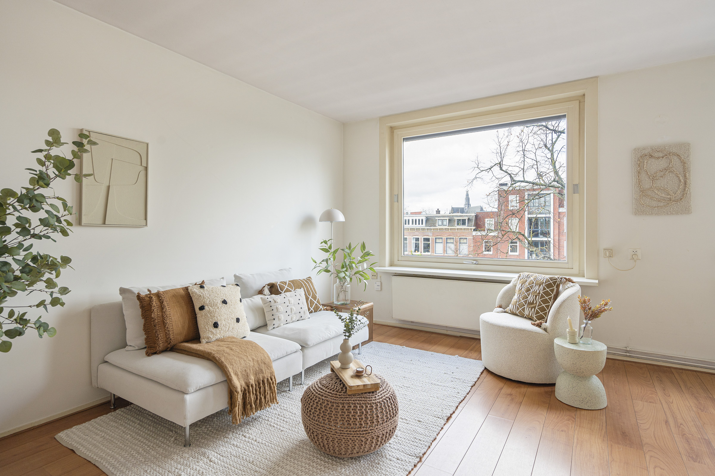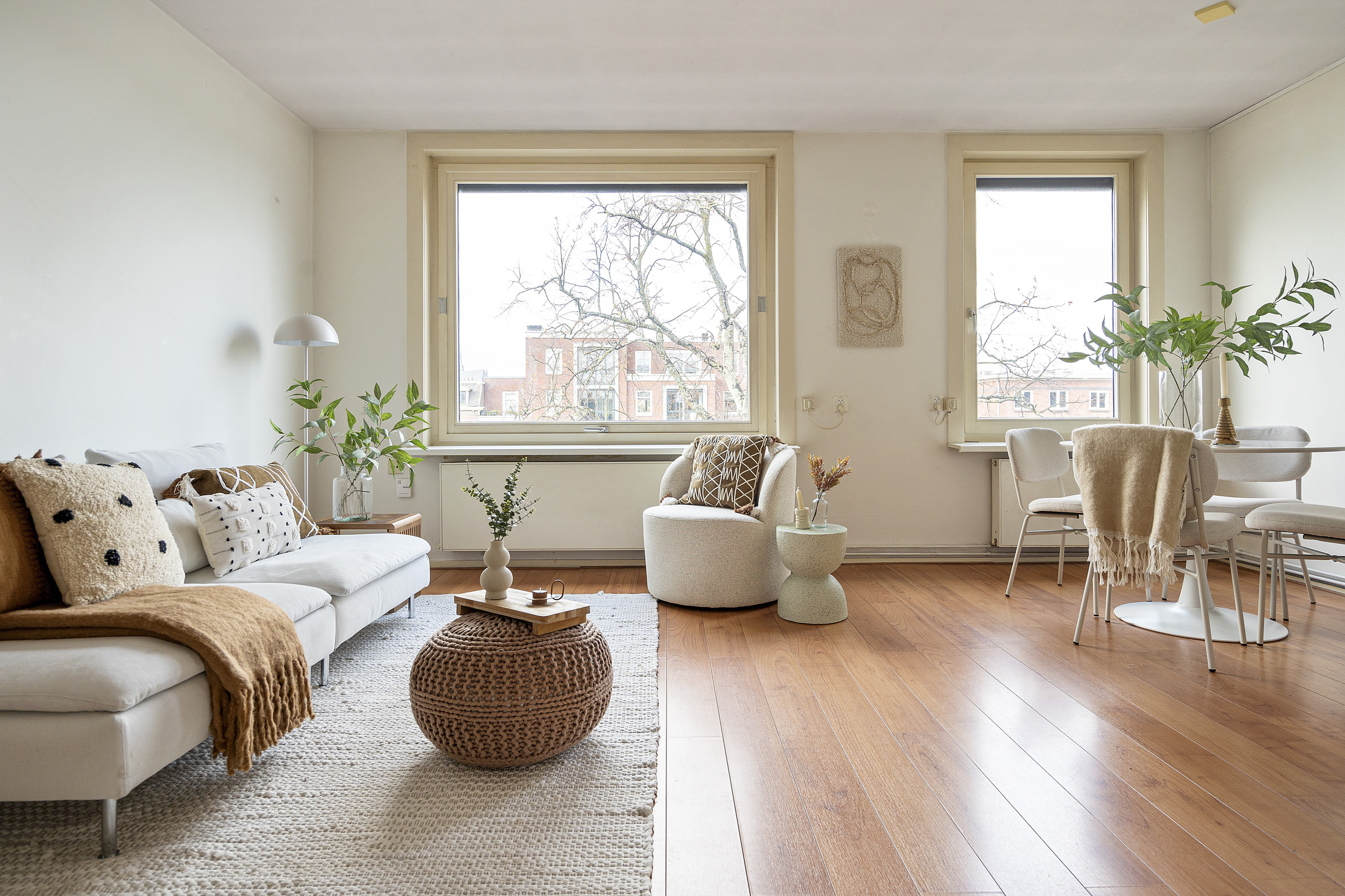 * Lichte woonkamer met grote raampartijen;