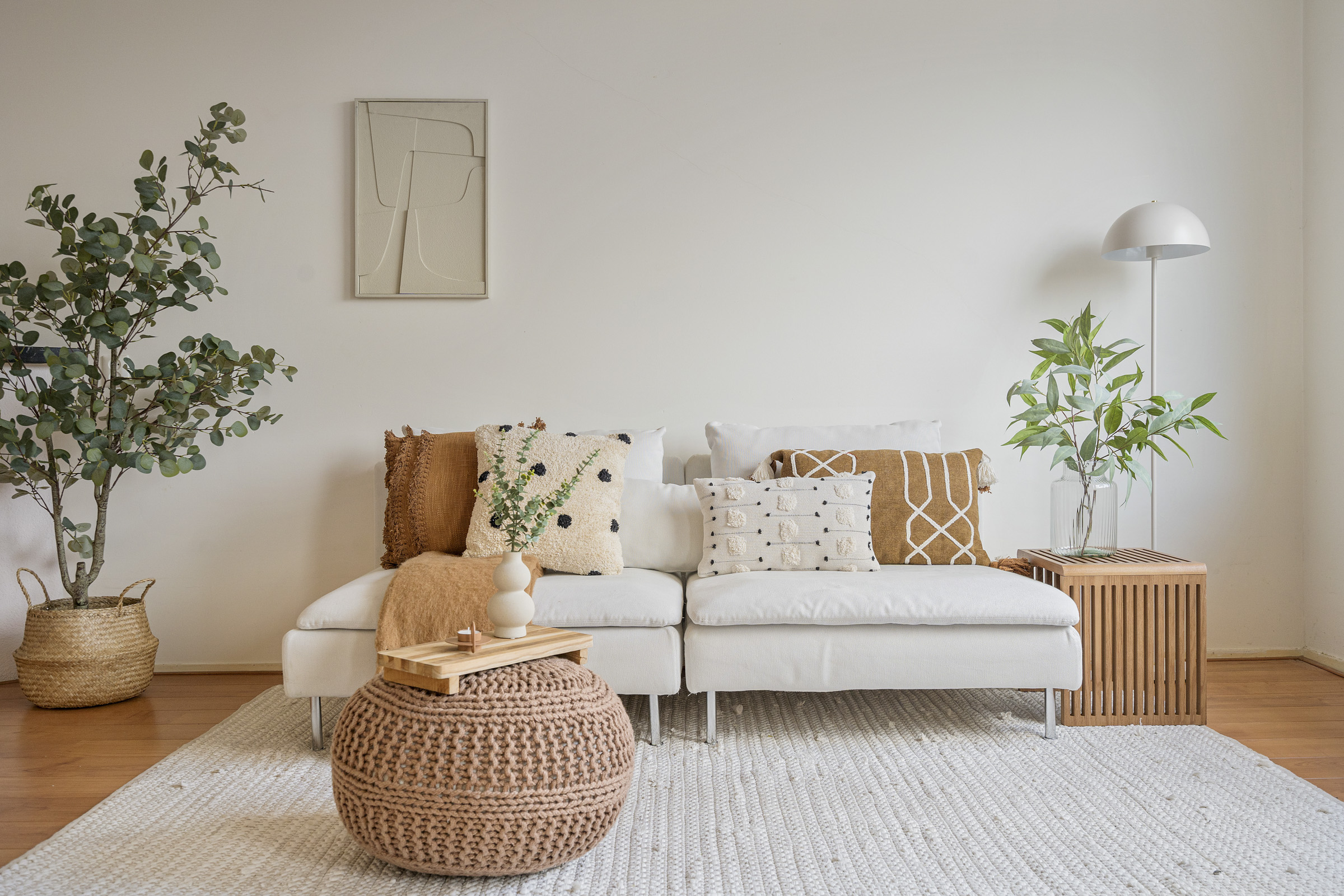 A beautiful wooden floor runs throughout the entire apartment, giving it a warm and contemporary look.