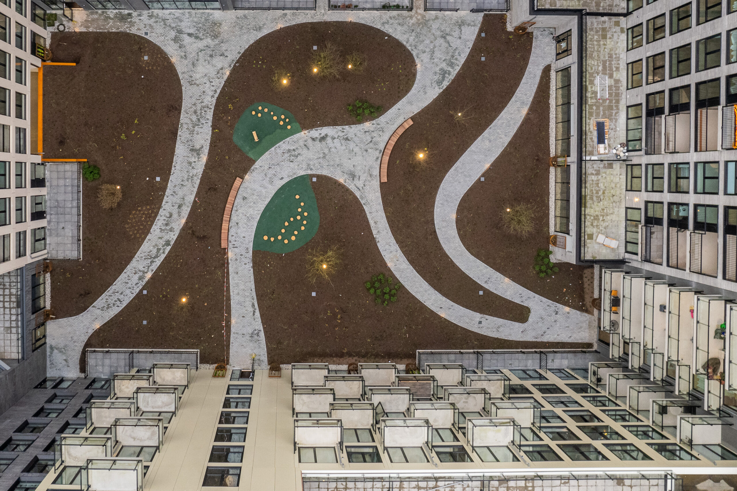 Het complex is voorzien van een gezamenlijke fietsenberging op de begane grond en een fraai ingerichte binnentuin met veel groen en diverse zitgelegenheden en speelvoorzieningen voor kinderen.