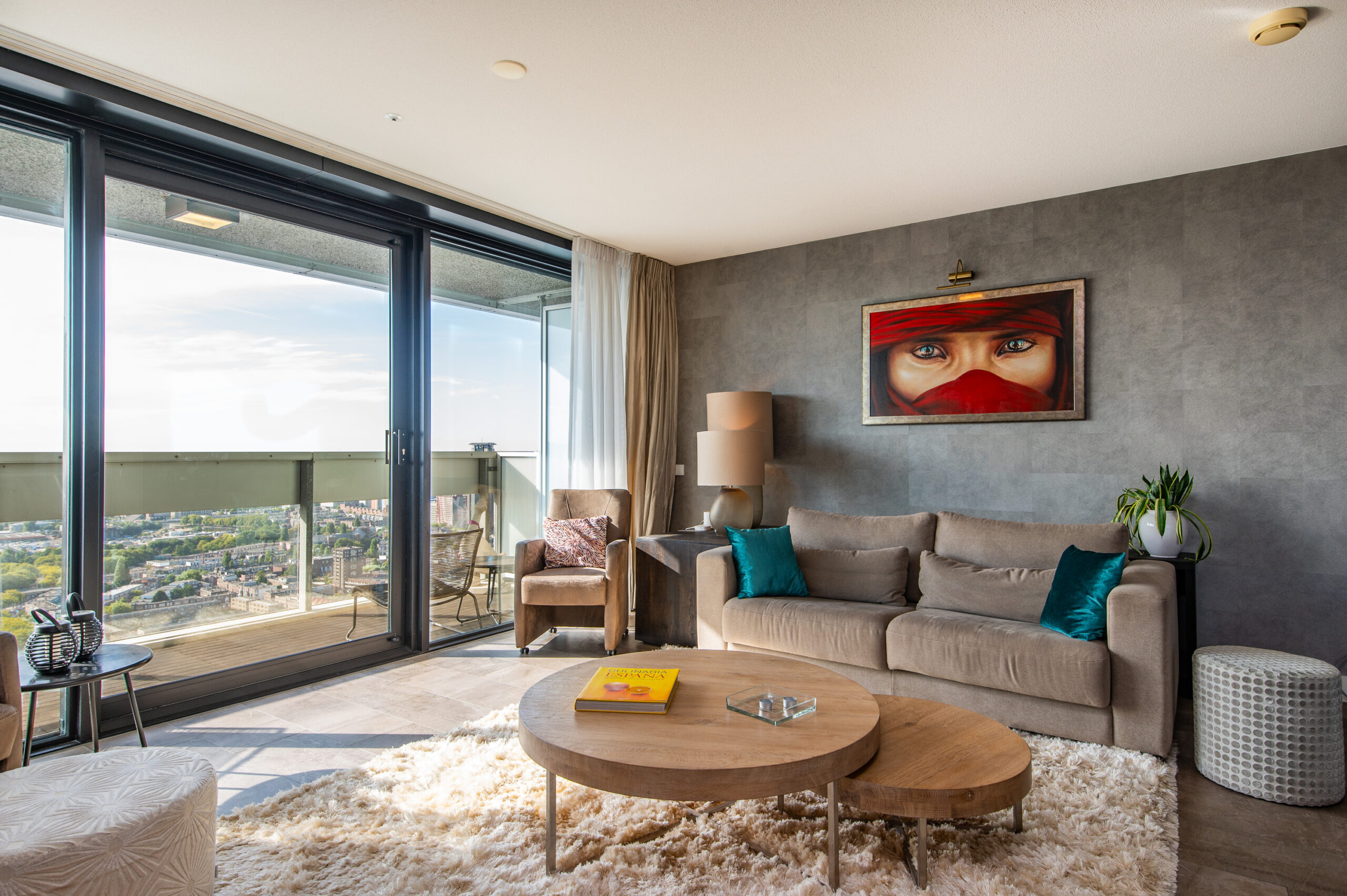 Luxe afgewerkt vierkamerappartement op de 37e verdieping (topetage) van het prestigieuze New Babylon complex. Een zonnig terras (Z-O), een privéparkeerplaats en berging én een adembenemend uitzicht zijn zomaar wat kenmerken van dit fijne appartement.