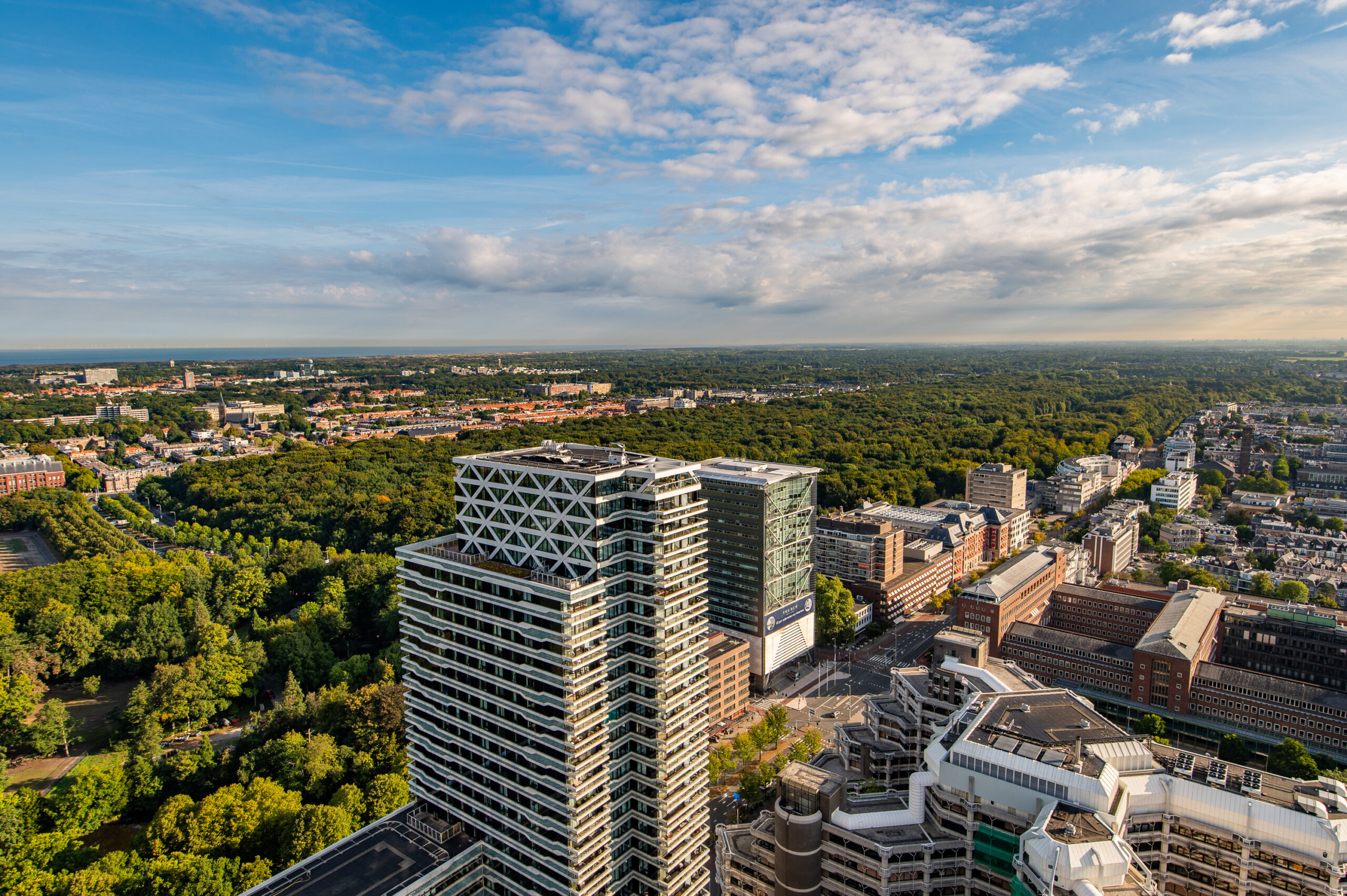 Located right next to Central Station and the A12 motorway, it’s easily accessible by both public transport and car. The city center is within walking distance, and the lively Theresiastraat in the Bezuidenhout district is just around the corner. You can even work out in the gym within the complex, and the Haagse Bos forest is just across the street.