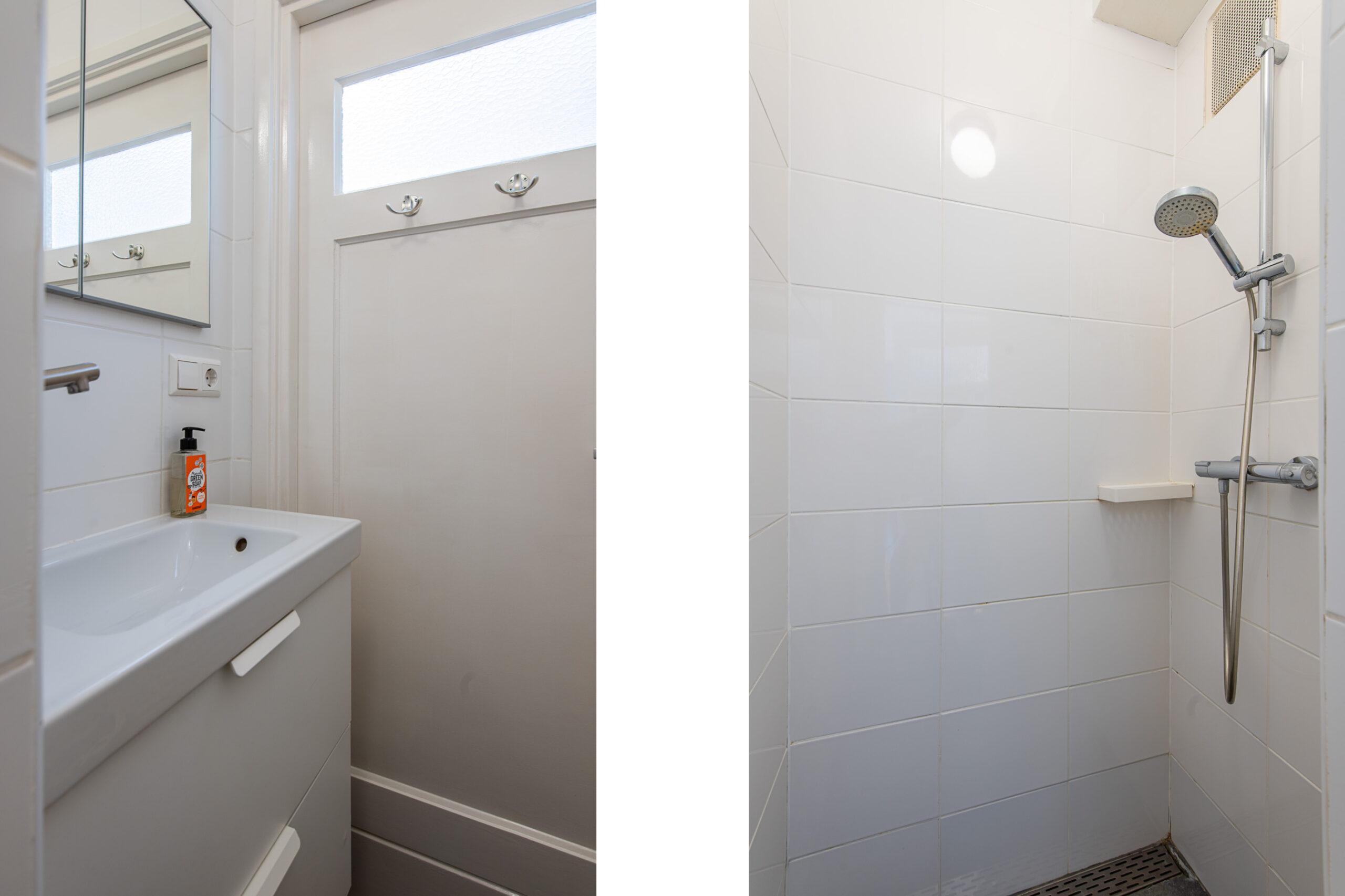 Entree vanaf de straat door diepe voortuin naar goed verzorgd portiek met brievenbussen en bellentableau. Trap naar de eerste verdieping. Meterkast en inpandige entree naar het appartement. Ruime hal met toegang tot alle vertrekken in het appartement.